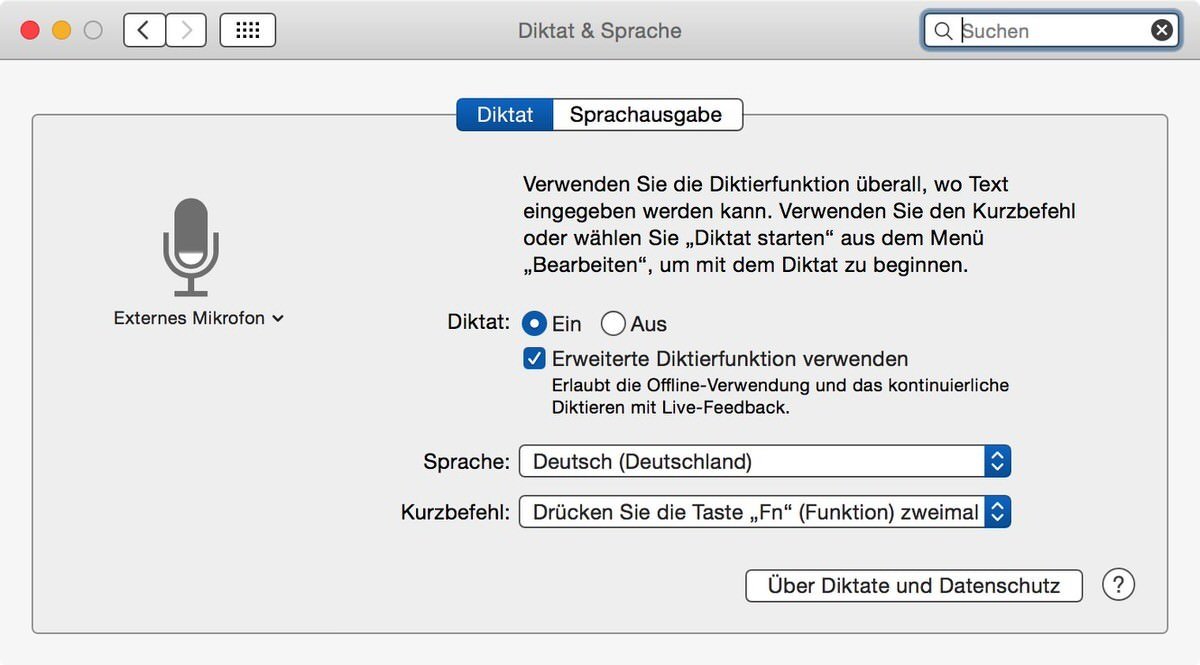 OS X Mavericks Diktierfunktion auch offline verfügbar