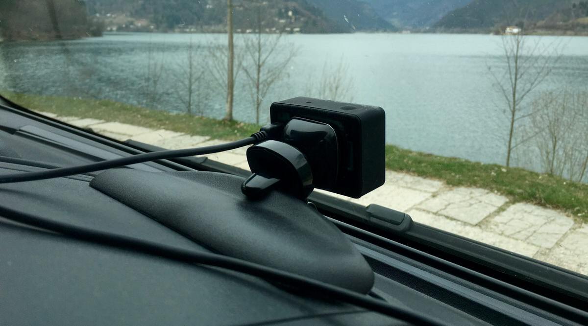 Die Kamera ist in der Farbe „Giftgrün“ am günstigsten und damit sie am Armaturenbrett nicht so sehr auffällt, kommt sie in ein schwarze Silikon-Case. Befestigt habe ich sie an einer magnetischen Smartphone-Halterung von OSO für die Lüftungsschlitze, welche man aber wie auf dem Bild zu sehen, auch an andern Stellen im Auto anbringen kann. Wer möchte kann aber auch die Variante mit Saugnapf verwenden, welche auch auf dem Armaturenbrett angebracht werden kann. Über beide Versionen habe ich hier im Blog bereits ausführlich geschrieben und bin davon weiterhin sehr begeistert. Mit dem wechselbaren Akku kann man zwar ca. 90 Minuten Video aufnehmen, aber sie kann auch durchgehend über ein Micro-USB Kabel mit Strom versorgt werden und das war im Auto natürlich meine bevorzugte Variante.
