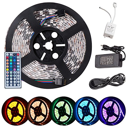 Ein Streifen besteht aus 300 LEDs, das macht ganze 60 LED´s pro Meter und er hat einen Abstrahlwinkel von 120 Grad. Über eine Fernbedienung kann man die Leiste steuern und neben der Farbwahl, kann man auch die Helligkeit in 8 Stufen regeln und die Farben auch individuell verändern. Wenn man möchte, können die verschiedenen Farben auch in einer Schleife durchlaufen, aber mir reichen die 20 direkten Farbtasten und die Regulierung der Helligkeit vollkommen aus.