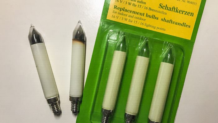 Das sind normale Glühbirnen, die es in unterschiedlichen Ausprägungen gibt. Doch welche Ersatzkerze passt zu meiner Lichterkette? Da es die Kerzen für unterschiedliche Spannungen zu kaufen gibt, solltet Ihr genau darauf achten, welche zu Eurer Lichterkette passen. Die älteren Lichterketten arbeiten mit 230V und haben verwenden den Sockel E10 für das Leuchtmittel.