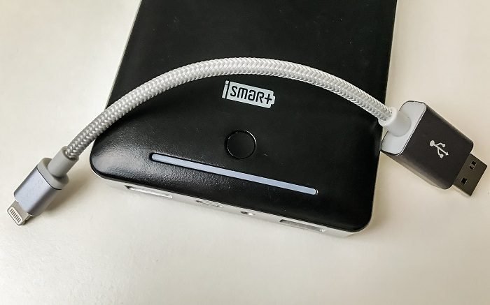 Jetzt die Lösung: Es gab zwar schon früher SD-Kartenleser für Apple Smartphones, diese funktionierten aber eher schlecht als recht. Jetzt habe ich aber etwas sehr geniales gefunden. Ein Lightning-Kabel, das einen eingebauten microSD-Kartenleser hat.