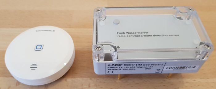 Einmal den HM-Sec-WDS-2, der hinter meiner Waschmaschine steht, und dann noch den