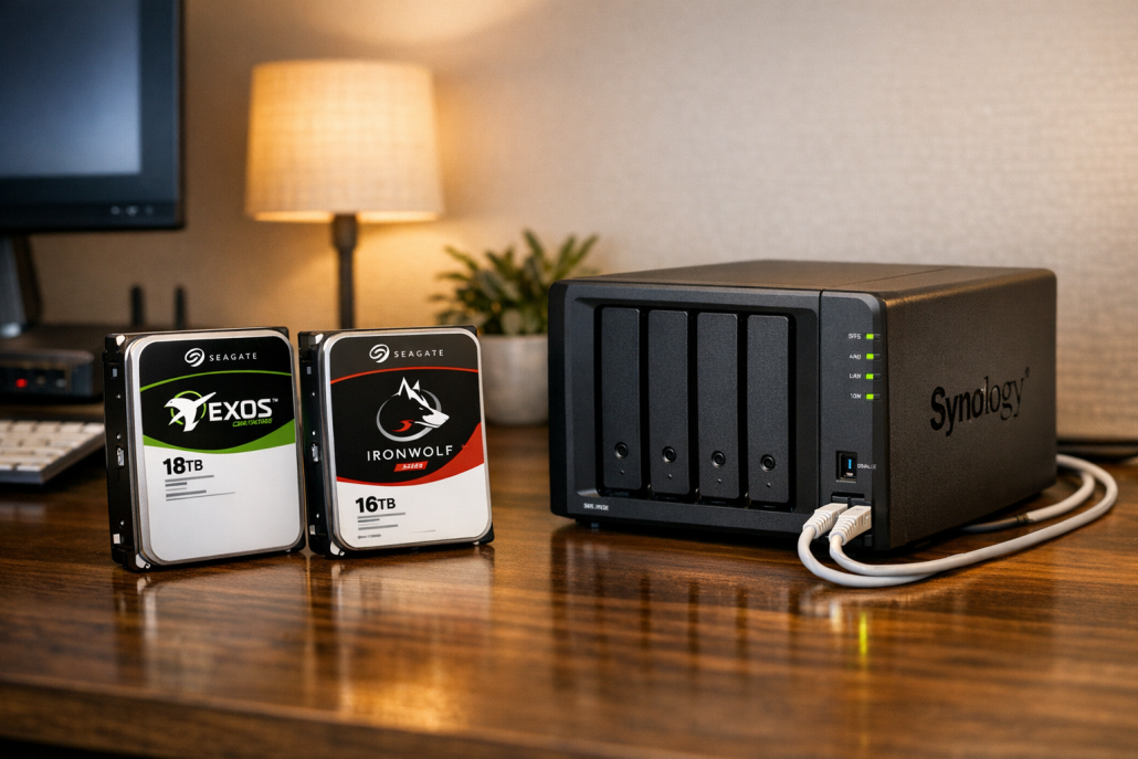 Wenn du schon einmal nachts in den Serverraum gegangen bist, weil dein NAS plötzlich piept, dann weißt du: Zuverlässigkeit ist im 24/7-Betrieb alles. Ich habe in den letzten Jahren etliche NAS-Systeme aufgebaut – für mein eigenes Smart Home, für kleine Unternehmen und für ambitionierte Heimadmins. Dabei hat sich eines immer wieder bestätigt: Die Wahl der richtigen Festplatten entscheidet über Stabilität, Performance und Lebensdauer. In diesem Artikel zeige ich dir, wie du mit Seagate Exos📦 und IronWolf Enterprise📦 dein eigenes Hochleistungs-NAS aufbaust, das Tag und Nacht durchläuft – ohne Kompromisse bei Sicherheit, Geschwindigkeit und Kapazität.