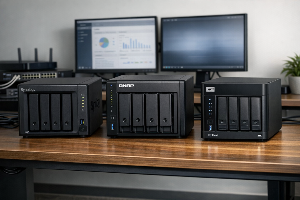Ich erinnere mich noch gut an mein erstes NAS im Büro – ein klobiges 2-Bay-Gerät, das mehr Lärm als Nutzen brachte. Heute, knapp 15 Jahre und viele Modelle später, sind Network Attached Storages (NAS) erwachsen geworden: Sie sind Server, Backup-System, Cloud und manchmal sogar der Herzschlag des Unternehmensnetzwerks. Für kleine und mittlere Unternehmen (KMU) ist 2026 das Jahr, in dem ein NAS längst kein Luxus mehr ist, sondern ein Muss für Datensicherheit, Teamarbeit und Compliance. Doch welches System lohnt sich wirklich? Synology, QNAP, WD oder vielleicht ein Nischenhersteller? In diesem Vergleich zeige ich, welche Modelle für KMU den besten Mix aus Leistung, Sicherheit und Wirtschaftlichkeit bieten – basierend auf den aktuellen Entwicklungen und meinen Erfahrungen aus dem täglichen Einsatz.