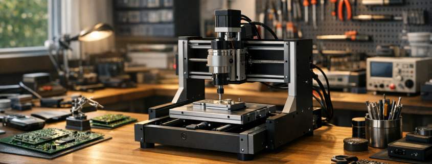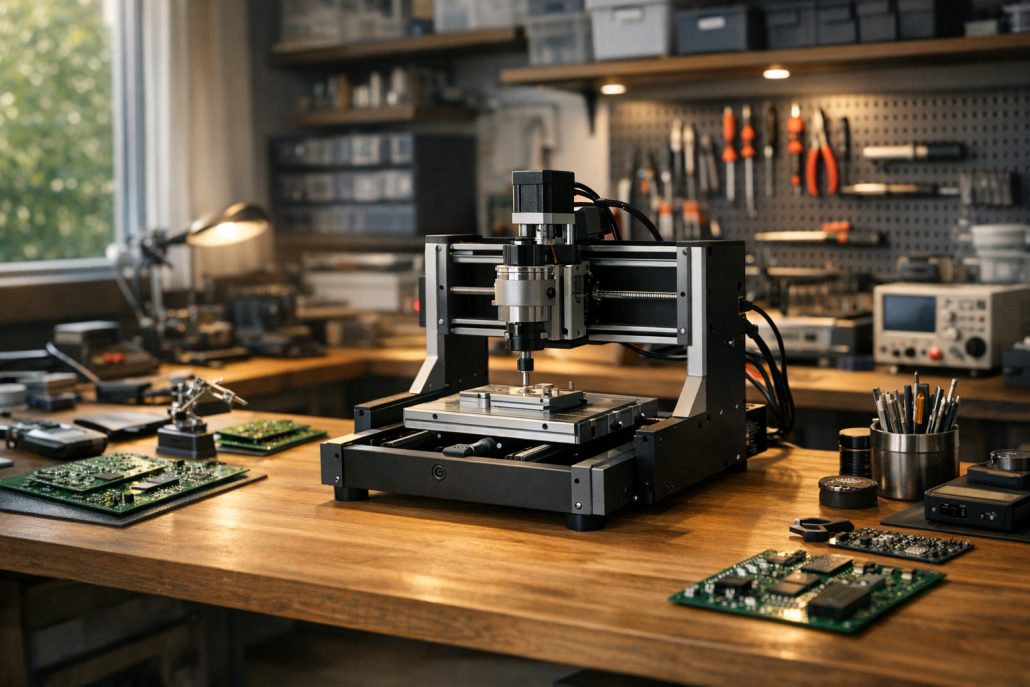 Für das Fräsen von Leiterplatten braucht man keine industrielle Ausrüstung – eine kompakte Desktop-CNC reicht völlig aus. In meinem Labor nutze ich eine Maschine mit stabiler Aluminiumstruktur und Kugelumlaufspindeln, die Wiederholgenauigkeiten im Bereich von wenigen Hundertstel Millimetern erreicht. Entscheidend sind folgende Komponenten: