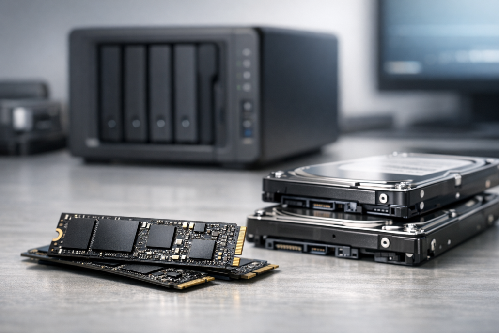Die Preisentwicklung spielt eine zentrale Rolle in der weiteren Verbreitung des NAS-Cachings. Aktuell liegen Consumer-SSDs mit 1 TB Kapazität bei rund 50–100 €, während NAS-optimierte Modelle wie die WD Red SA500 etwa 150 € pro TB kosten. HDDs bleiben mit etwa 100 € für 4–6 TB deutlich günstiger – doch der Preisabstand schrumpft. Der Grund: Fortschritte in der NAND-Produktion und der Übergang zu QLC-Architekturen senken die Kosten stetig. Branchenbeobachter rechnen damit, dass SSDs in den kommenden Jahren zunehmend als Standardkomponente in NAS-Systemen verbaut werden – nicht mehr optional, sondern integraler Bestandteil des Designs. Parallel dazu wächst das Angebot an Hybrid-NAS-Systemen, die ab Werk mit SSD-Caches ausgeliefert werden. Diese Systeme kombinieren große HDD-Volumes mit kleinen, schnellen SSDs und übernehmen die Cache-Verwaltung automatisch. Für Heimanwender wird das Thema damit noch zugänglicher.