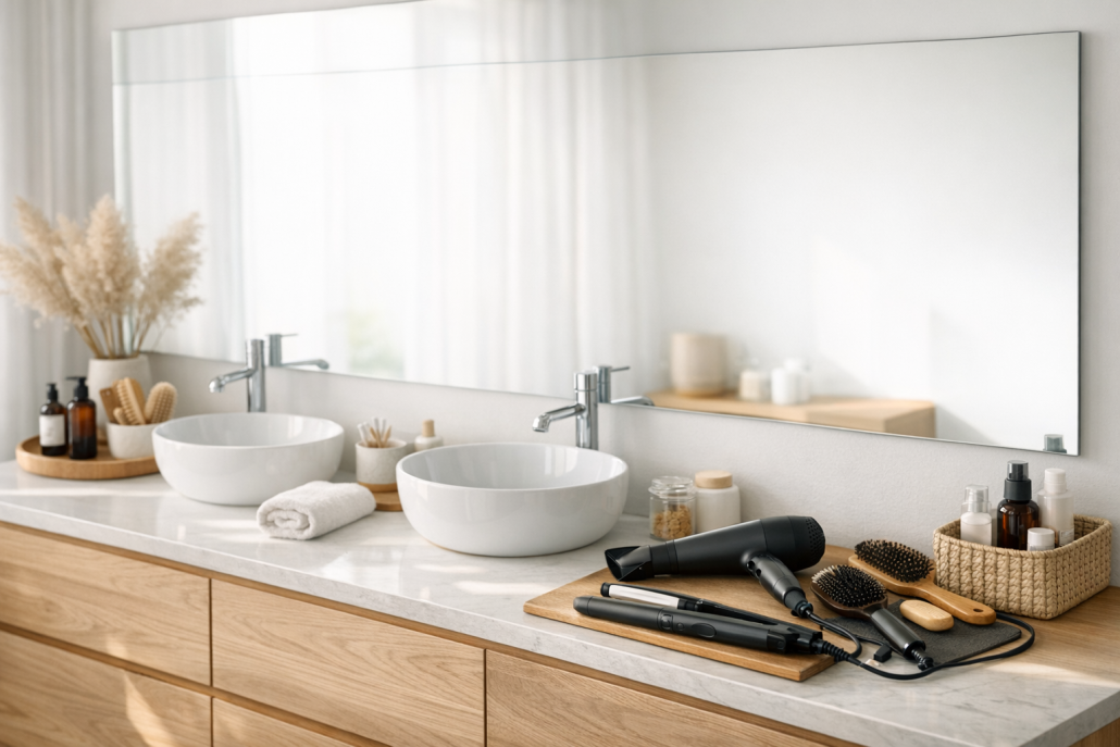 Ein kleiner Profi-Tipp: Stelle dir dein Styling-Setup immer gleich auf. Ich habe meinen Dyson z. B. auf einem hitzebeständigen Silikonpad neben dem Spiegel platziert – das spart morgens wertvolle Minuten.