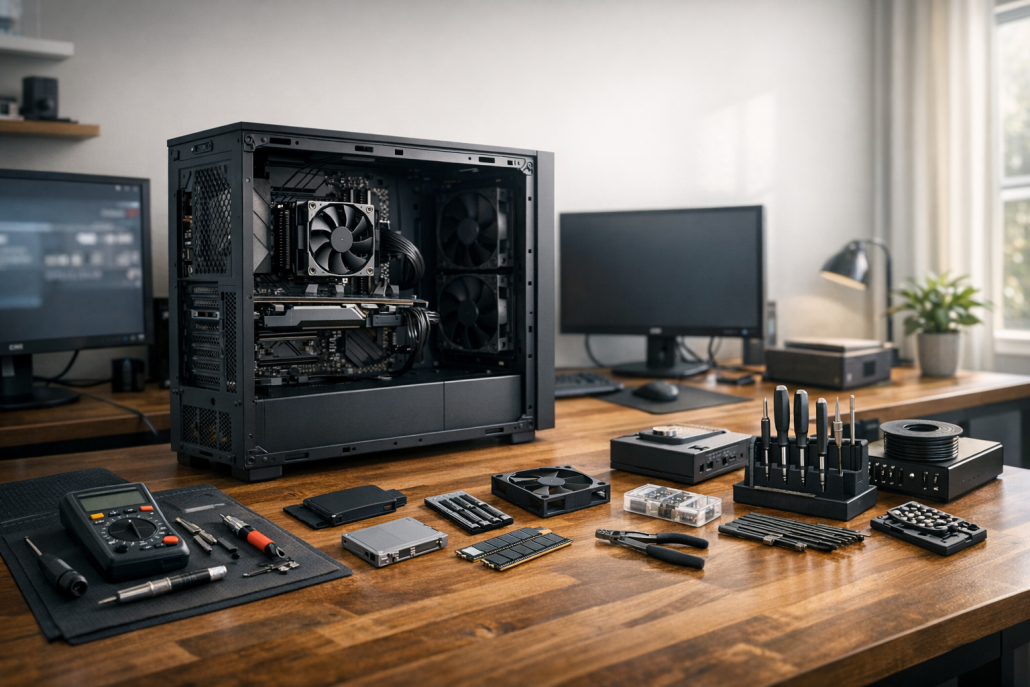- Vorbereitung: PC komplett ausschalten, Netzteil trennen und kurz den Power-Knopf drücken, um Restspannung zu entladen. Ein Erdungsarmband oder Berühren einer geerdeten Metallfläche verhindert elektrostatische Entladung.