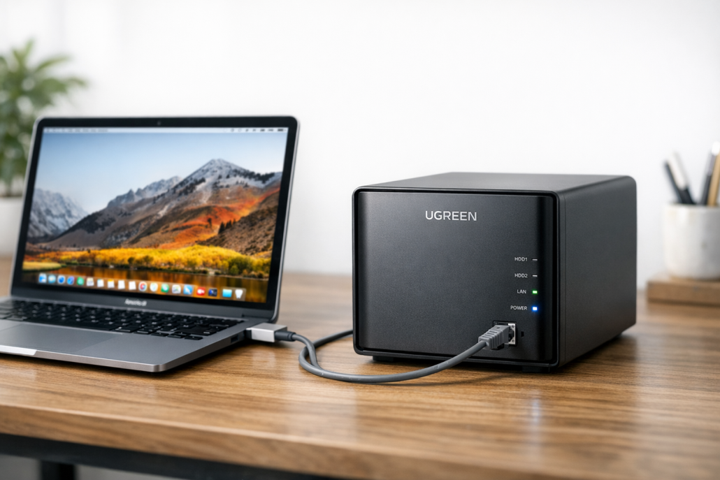Ich erinnere mich noch gut an den Moment, als meine externe USB-Festplatte mit all meinen Backups plötzlich nicht mehr erkannt wurde. Kein Geräusch, kein Licht – einfach tot. Seitdem habe ich mir geschworen: Nie wieder eine einzelne Backup-Quelle. Heute läuft bei mir alles redundant – und eines der elegantesten Setups ist die Integration eines UGREEN NAS als Time Machine-Backup für meinen Mac. Das ist nicht nur zuverlässig, sondern auch angenehm automatisiert. In diesem Artikel zeige ich dir, wie du dein UGREEN NAS als Time Machine-Ziel einrichtest, welche Fallstricke es gibt und wie du das Maximum an Stabilität und Performance herausholst.