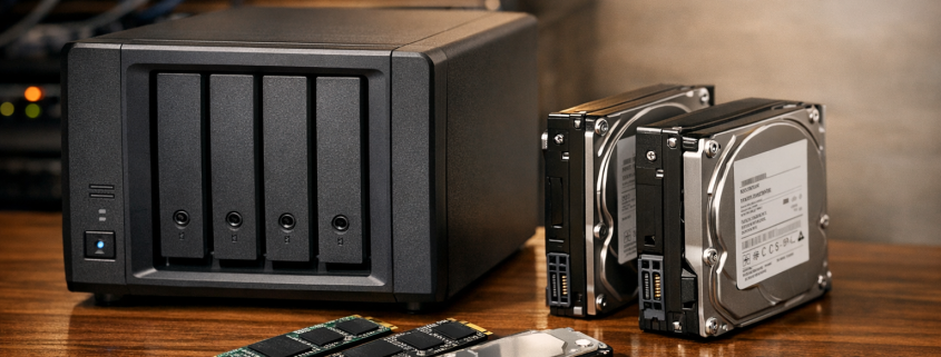 Ich erinnere mich noch gut an den Moment, als mein erstes NAS mit vier drehenden HDDs unter meinem Schreibtisch anfing, bei jeder Dateioperation zu rödeln wie ein alter Dieselmotor. Damals dachte ich: „Mehr RAM wird’s schon richten.“ Falsch gedacht. Erst mit einem SSD-Cache kam der Aha-Moment – die Performance sprang sprichwörtlich durch die Decke. Und genau darum geht es in diesem Beitrag: um NAS-SSDs im Detail – was sie leisten, welche Modelle sich wirklich lohnen und wie man sie optimal einsetzt. Ich zeige, welche Unterschiede es zwischen Seagate, WD, Synology und Co. gibt, wann sich NVMe lohnt und wie du dein Setup gezielt beschleunigst – ganz ohne Marketing-Blabla, dafür mit echten Praxiswerten.