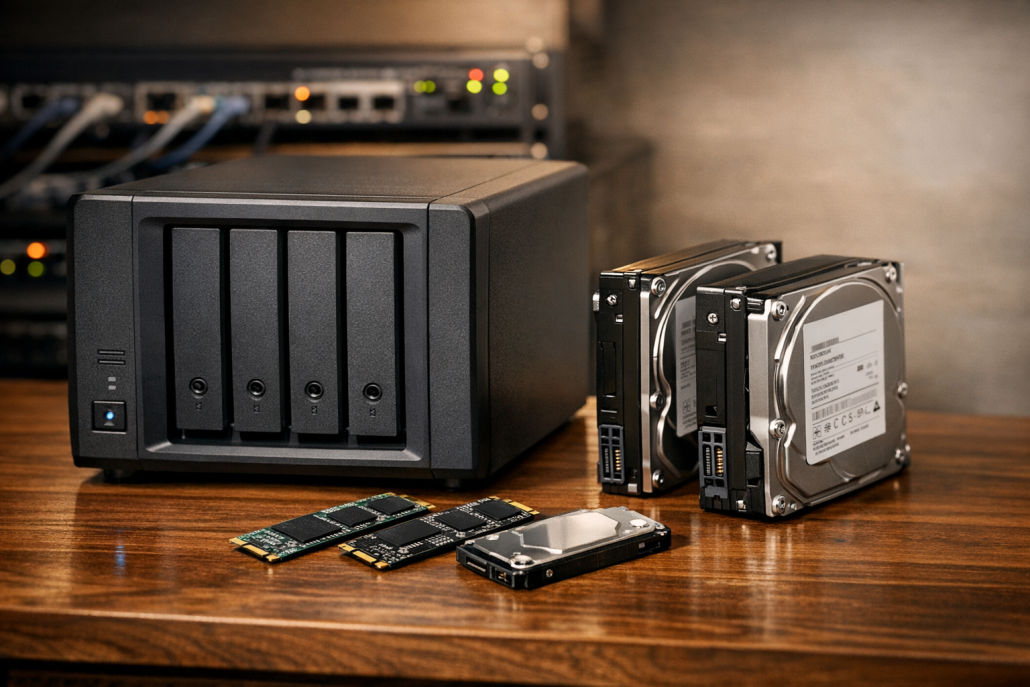 Ich erinnere mich noch gut an den Moment, als mein erstes NAS mit vier drehenden HDDs unter meinem Schreibtisch anfing, bei jeder Dateioperation zu rödeln wie ein alter Dieselmotor. Damals dachte ich: „Mehr RAM wird’s schon richten.“ Falsch gedacht. Erst mit einem SSD-Cache kam der Aha-Moment – die Performance sprang sprichwörtlich durch die Decke. Und genau darum geht es in diesem Beitrag: um NAS-SSDs im Detail – was sie leisten, welche Modelle sich wirklich lohnen und wie man sie optimal einsetzt. Ich zeige, welche Unterschiede es zwischen Seagate, WD, Synology und Co. gibt, wann sich NVMe lohnt und wie du dein Setup gezielt beschleunigst – ganz ohne Marketing-Blabla, dafür mit echten Praxiswerten.
