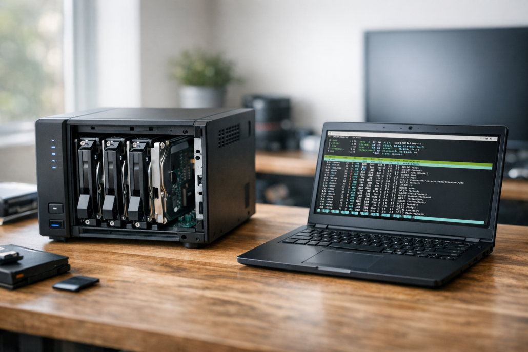 Ein NAS, das plötzlich nicht mehr startet, ist für viele der absolute Albtraum – und genau das ist mir vor ein paar Monaten passiert. Mein treues Synology-System hatte nach einem Stromausfall den Dienst verweigert, und die beiden Seagate IronWolf-Laufwerke blinkten nur noch synchron rot. Kein Zugriff mehr auf die Daten, keine Freigaben, kein DSM. Statt Panik zu schieben, habe ich mein Linux-Toolkit ausgepackt und mich an die Rettung gemacht – mit Erfolg. In diesem Artikel zeige ich euch, wie ihr Schritt für Schritt ein defektes RAID-System unter Linux wieder zusammenbaut, Daten auslest und sicher kopiert. Ob Synology, QNAP oder Eigenbau-NAS: Das Prinzip ist immer ähnlich – und mit den richtigen Tools erstaunlich zuverlässig.