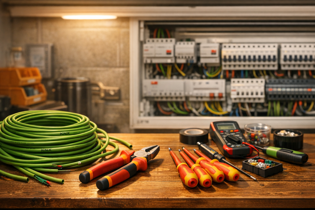 Bevor du das erste Kabel ziehst, ist eine saubere Planung Pflicht. Lege fest, welche Funktionen du automatisieren möchtest – Licht, Rollläden, Heizung, Szenen – und wo Sensoren und Aktoren sitzen sollen. Werkzeug und Material: