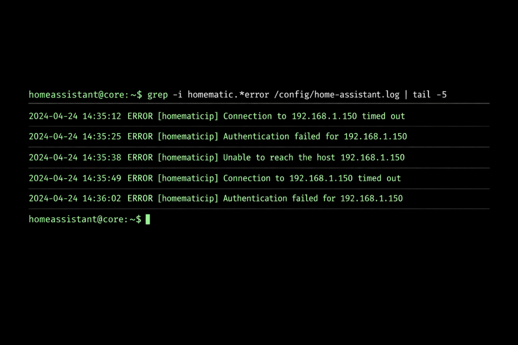 grep -i "homematic.*error\|homematic.*timeout\|homematic.*failed" /config/home-assistant.log | tail -5