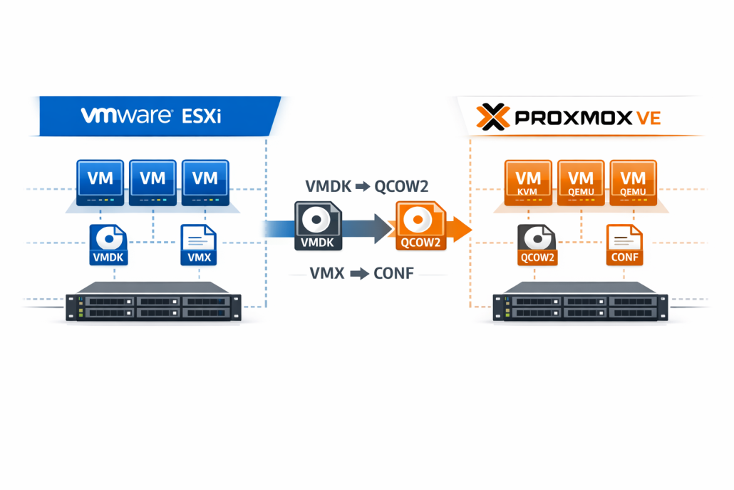 Vollständige Systemumstellung von VMware ESXi zu Proxmox VE mit allen kritischen Migrationspunkten