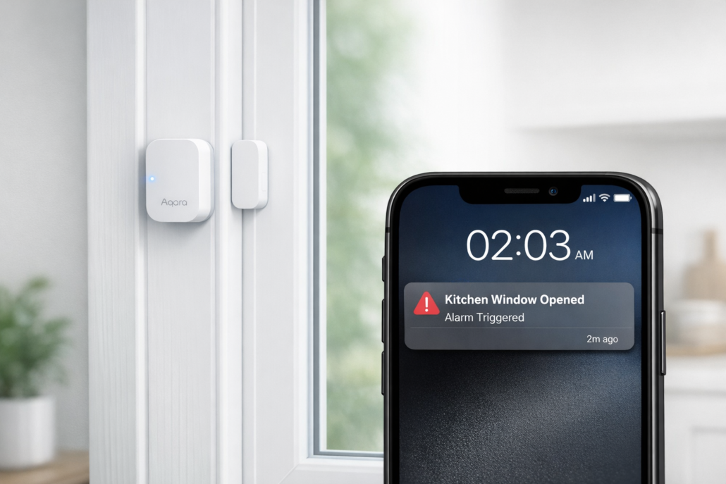 Das System lernt auch deine Gewohnheiten: Wenn du jeden Morgen um 7 Uhr das Küchenfenster öffnest, kann es diese Zeit als „normal“ einstufen und keinen Alarm senden. Nur wenn das Fenster zu ungewöhnlichen Zeiten geöffnet wird, bekommst du eine Benachrichtigung.