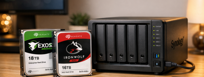 Wenn du schon einmal nachts in den Serverraum gegangen bist, weil dein NAS plötzlich piept, dann weißt du: Zuverlässigkeit ist im 24/7-Betrieb alles. Ich habe in den letzten Jahren etliche NAS-Systeme aufgebaut – für mein eigenes Smart Home, für kleine Unternehmen und für ambitionierte Heimadmins. Dabei hat sich eines immer wieder bestätigt: Die Wahl der richtigen Festplatten entscheidet über Stabilität, Performance und Lebensdauer. In diesem Artikel zeige ich dir, wie du mit Seagate Exos📦 und IronWolf Enterprise📦 dein eigenes Hochleistungs-NAS aufbaust, das Tag und Nacht durchläuft – ohne Kompromisse bei Sicherheit, Geschwindigkeit und Kapazität.