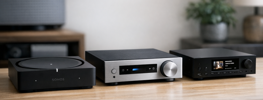 Wenn ich in meinem Studio oder Wohnzimmer Musik höre, will ich nicht zwischen Klangqualität und Komfort wählen müssen. Genau da kommen Streaming-Verstärker ins Spiel – kleine Kraftpakete, die klassische HiFi-Technik mit moderner Streaming-Intelligenz verbinden. Der Sonos Amp🛒 ist dabei einer der bekanntesten Vertreter, doch wie schlägt er sich gegen Alternativen wie den Denon HEOS Amp📦, Yamaha MusicCast📦 oder Bose SoundTouch SA-5📦? Ich habe mir alle genau angesehen, sie in mein Smart-Home integriert und in realen Setups getestet – vom Homestudio bis zum Wohnzimmer. In diesem Artikel zeige ich dir, wie sich der Sonos Amp🛒 im Vergleich schlägt, wo seine Stärken liegen und wann die Konkurrenz die Nase vorn hat.
